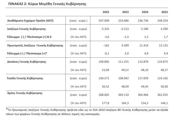 Παράλληλα η ΕΛΣΤΑΤ γνωστοποιεί ότι το αποτέλεσμα της Γενικής Κυβέρνησης για το έτος 2025, σύμφωνα με το ESA 2010, εκτιμάται στα 4,29 δισ. ευρώ (πλεόνασμα), ενώ το ακαθάριστο ενοποιημένο χρέος της Γενικής Κυβέρνησης σε ονομαστικές τιμές στο τέλος του 2025 εκτιμάται στα 362,9 δισ. ευρώ (146,1% επί του Ακαθάριστου Εγχώριου Προϊόντος).