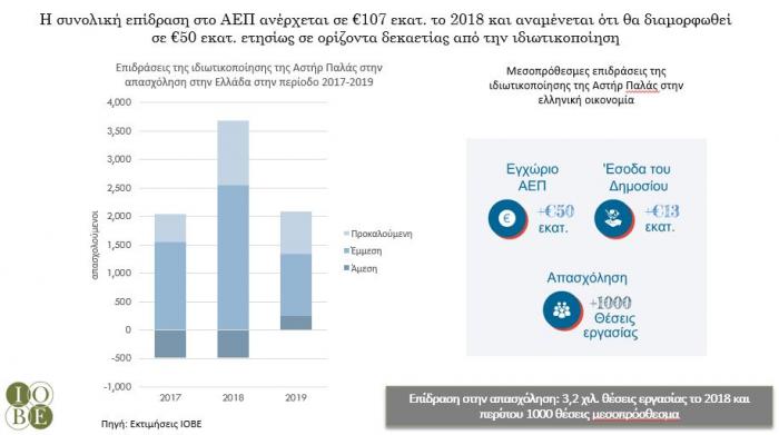 Όσον αφορά στο ξενοδοχειακό συγκρότημα Αστήρ Παλάς Βουλιαγμένης, μαζί με τις επενδύσεις που πραγματοποιήθηκαν για τη ριζική αναβάθμιση του, εκτιμάται ότι η συνολική επίδραση στο ΑΕΠ ανέρχεται σε €107 εκατ. το 2018, ενώ αναμένεται να διαμορφωθεί στα επίπεδα των €50 εκατ. σε ορίζοντα δεκαετίας.