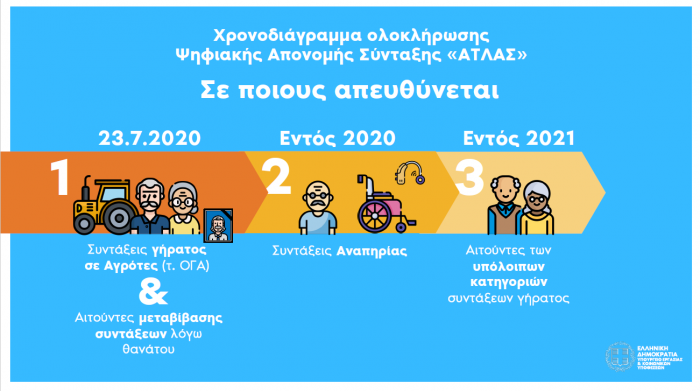 Ξεκινάει, λοιπόν, μία νέα εποχή για όλους τους πολίτες της χώρας, η κοινωνική ασφάλιση παίρνει μία νέα πορεία. Μία πορεία, που ξεκινάει σήμερα και θα ολοκληρωθεί στο τέλος του 2021 όπου σύμφωνα με το χρονοδιάγραμμα του e-ΕΦΚΑ, ολοκληρώνεται η πλήρης λειτουργία του Πληροφοριακού Συστήματος ΑΤΛΑΣ. Σταδιακά, θα εντάσσονται στο σύστημα «ΑΤΛΑΣ» και νέες κατηγορίες συνταξιοδοτικών αποφάσεων. Ξεκινάμε, όπως έχουμε ήδη πει με τις συντάξεις χηρείας και τις συντάξεις τ. ΟΓΑ.