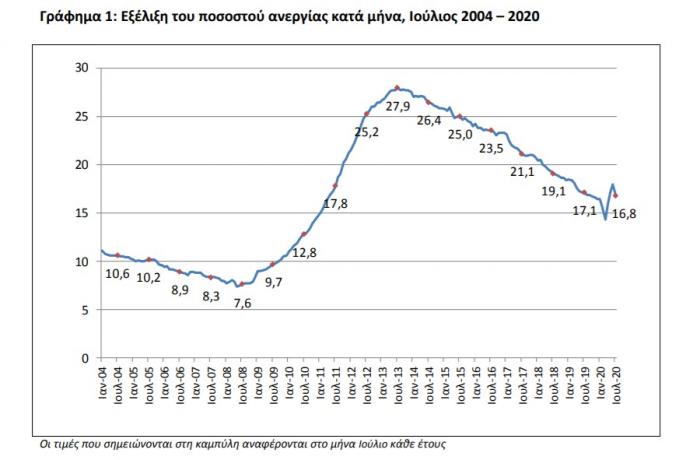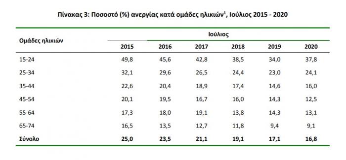 Στο 16,8% έναντι 17,1% τον Ιούλιο του 2019 ανήλθε το εποχικά διορθωμένο ποσοστό ανεργίας τον Ιούλιο του 2020, σύμφωνα με τα στοιχεία που ανακοίνωσε η Ελληνική Στατιστική Αρχή (ΕΛΣΤΑΤ)