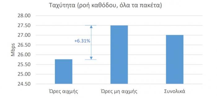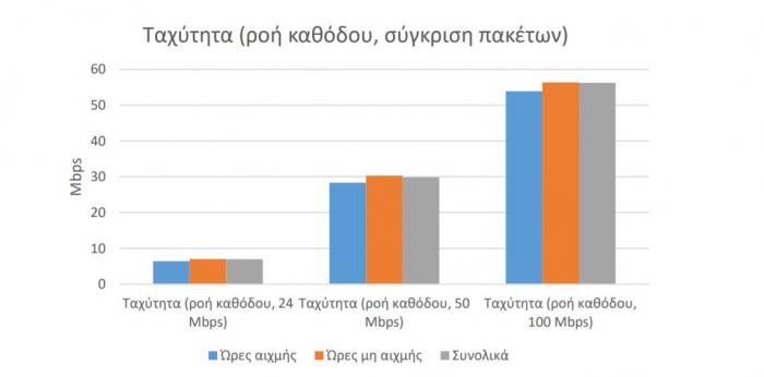 Ταχύτητες ανά πακέτο σε ώρες αιχμής και μη αιχμής