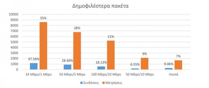 Το πακέτο 24 Mbps/1 Mbps παραμένει το πιο δημοφιλέστερο πακέτο μεταξύ των χρηστών -κυρίως λόγω διαθεσιμότητας ταχυτήτων ανά την επικράτεια. Ωστόσο υπάρχει πλέον σημαντικός αριθμός χρηστών με πακέτα 50 Mbps/5 Mbps και 100 Mbps/10 Mbps, που μαζί αποτελούν πλέον την πλειονότητα των πακέτων. Σύμφωνα με το ποσοστό των χρηστών του ΥΠΕΡΙΩΝ, το πακέτο 24 Mbps/1 Mbps παρέχεται στο 51% των συνδρομητών το 2019 και 57% το 2018.