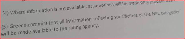 Στην επιστολή περιλαμβάνονται οι δεσμεύσεις που αναλαμβάνει η χώρα για τον τρόπο, και τις παραμέτρους που πρέπει να ληφθούν υπόψη, προσδιορισμού της αξιολόγησης των διαφόρων τίτλων που θα εκδοθούν, καθώς επίσης και τα στοιχεία που θα πρέπει να παρέχει στους ορκωτούς λογιστές που θα αναλάβουν την αξιολόγηση και τιμολόγηση της συναλλαγής. Στο πλαίσιο αυτό θα δοθούν αναλυτικά στοιχεία για κάθε «κόκκινο» δάνεια που θα μεταφερθούν στα ειδικά οχήματα στο πλαίσιο της συναλλαγής.
