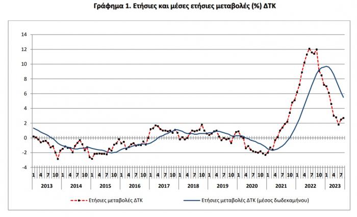 - Ο μέσος ΔΤΚ του δωδεκαμήνου Σεπτεμβρίου 2022 - Αυγούστου 2023, σε σύγκριση με τον αντίστοιχο Δείκτη του δωδεκαμήνου Σεπτεμβρίου 2021 - Αυγούστου 2022, παρουσίασε αύξηση 5,5%.