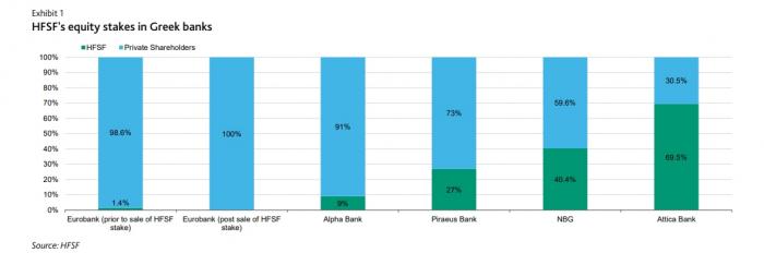 Η πώληση των συμμετοχών του ΤΧΣ στην Εθνική Τράπεζα και την Τράπεζα Πειραιώς θα μπορούσε να είναι πιο δύσκολη από τη συμφωνία με τη Eurobank, επειδή έχει σημαντικά υψηλότερες συμμετοχές (40,4% και 27%, αντίστοιχα), ενώ το μερίδιό του στην Alpha Bank (9%) θα ήταν ευκολότερο να εκποιηθεί.