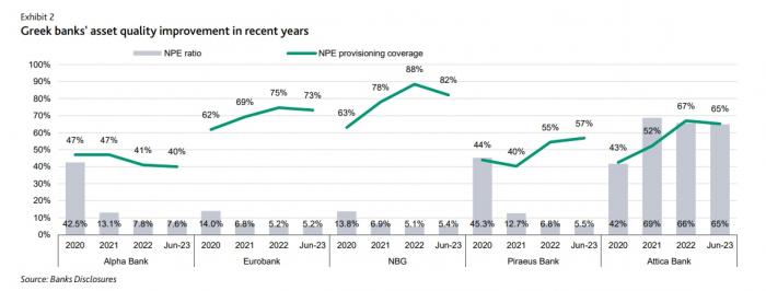 Όπως τονίζει το πρακτορείο σε διάστημα μόλις ενός έτους η Ελλάδα «αποχώρησε» από τις τράπεζες, με τον κλάδο να επιστρέφει στην κανονικότητα και να κατορθώνει να «καθαρίσει» τους ισολογισμούς του.