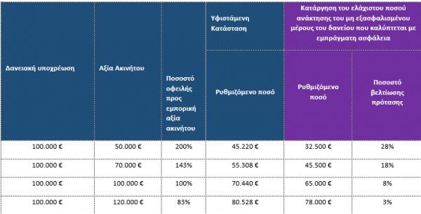 Ποσοστό οφειλής προς εμπορική αξία ακινήτου Υφιστάμενη Κατάσταση Κατάργηση του ελάχιστου ποσού ανάκτησης του μη εξασφαλισμένου μέρους του δανείου που καλύπτεται με εμπράγματη ασφάλεια