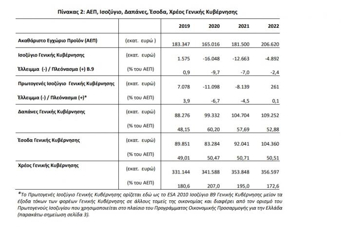 Το ακαθάριστο ενοποιημένο χρέος της Γενικής Κυβέρνησης σε ονομαστικές τιμές στο τέλος του 2022 εκτιμάται στα 357 δισ. ευρώ (172,6% επί του Ακαθάριστου Εγχώριου Προϊόντος). Είναι ελαφρά υψηλότερο σε σχέση με την εκτίμηση που υπήρχε 6 μήνες πριν κατά την πρώτη κοινοποίηση στοιχείων (171,3% του ΑΕΠ στα 356,256 δισ. ευρώ).