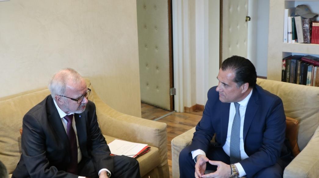 Τις αναπτυξιακές προοπτικές της ελληνικής οικονομίας, τα επιχειρηματικά σχέδια τα οποία χρηματοδοτεί η Ευρωπαϊκή Τράπεζα Επενδύσεων στην Ελλάδα και την Ελληνική Αναπτυξιακή Τράπεζα συζήτησαν σήμερα ο υπουργός Ανάπτυξης και Επενδύσεων, Άδωνις Γεωργιάδης και ο πρόεδρος της Ευρωπαϊκής Τράπεζας Επενδύσεων, Βέρνερ Χόιερ.