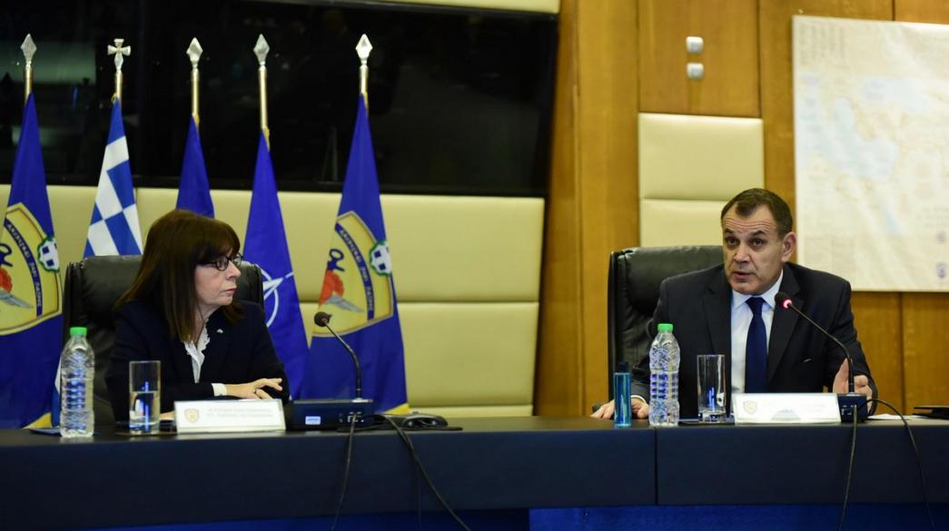 Τον σημαντικό ρόλο των Ενόπλων Δυνάμεων στην προστασία των κυριαρχικών μας δικαιωμάτων αλλά και στην αντιμετώπιση της υγειονομικής κρίσης που μαζί με όλον τον πλανήτη αντιμετωπίζει τώρα η χώρα μας, υπογράμμισε η Πρόεδρος της Δημοκρατίας κα Κατερίνα Σακελλαροπούλου κατά την πρώτη της ενημερωτική επίσκεψη στο υπουργείο Εθνικής 'Αμυνας, μετά την ανάληψη των καθηκόντων της.