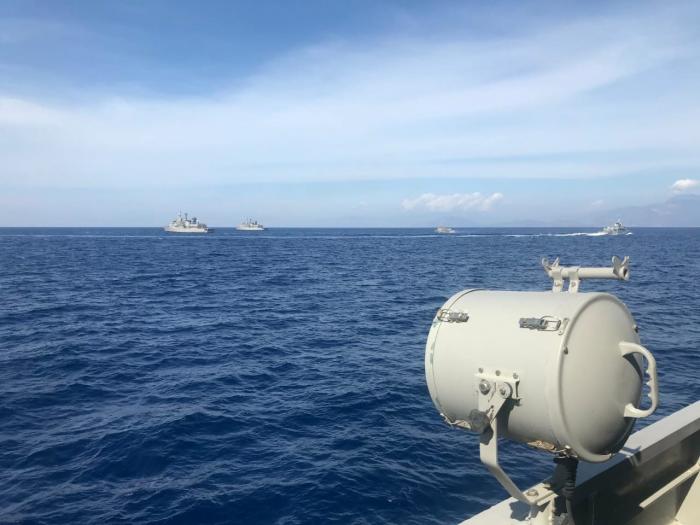 Παράλληλα, ισχυρή είναι η παρουσία ελληνικών πλοίων στο σύμπλεγμα Καστελόριζου. «Άλλη μία απόδειξη ότι οι Ένοπλες Δυνάμεις είναι απόλυτα έτοιμες αλλά και πλήρως αποφασισμένες να επιτελέσουν την αποστολή τους με επιτυχία, προασπίζοντας τα κυριαρχικά μας συμφέροντα», αναφέρεται σε ενημέρωση του ΓΕΕΘΑ.